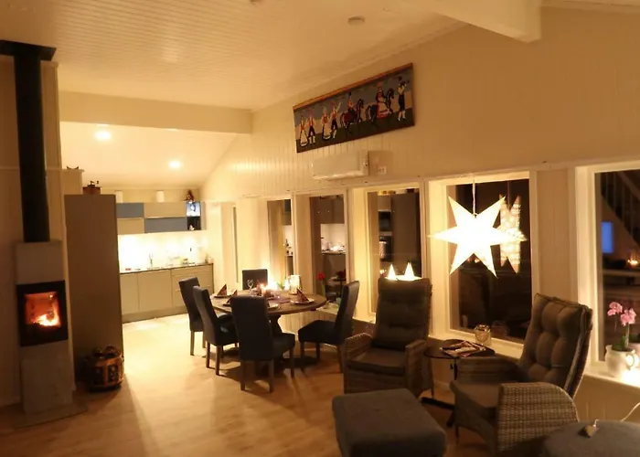 Located 0.2 km from The Norwegian Museum of Travel and Tourism, the 5-bedroom Villa Holmen offers rooms with sea views. This venue comes with a flat-screen TV with satellite channels, wireless Internet and a stone fireplace and an equipped kitchen with coffee and tea making facilities, and kitchenware.